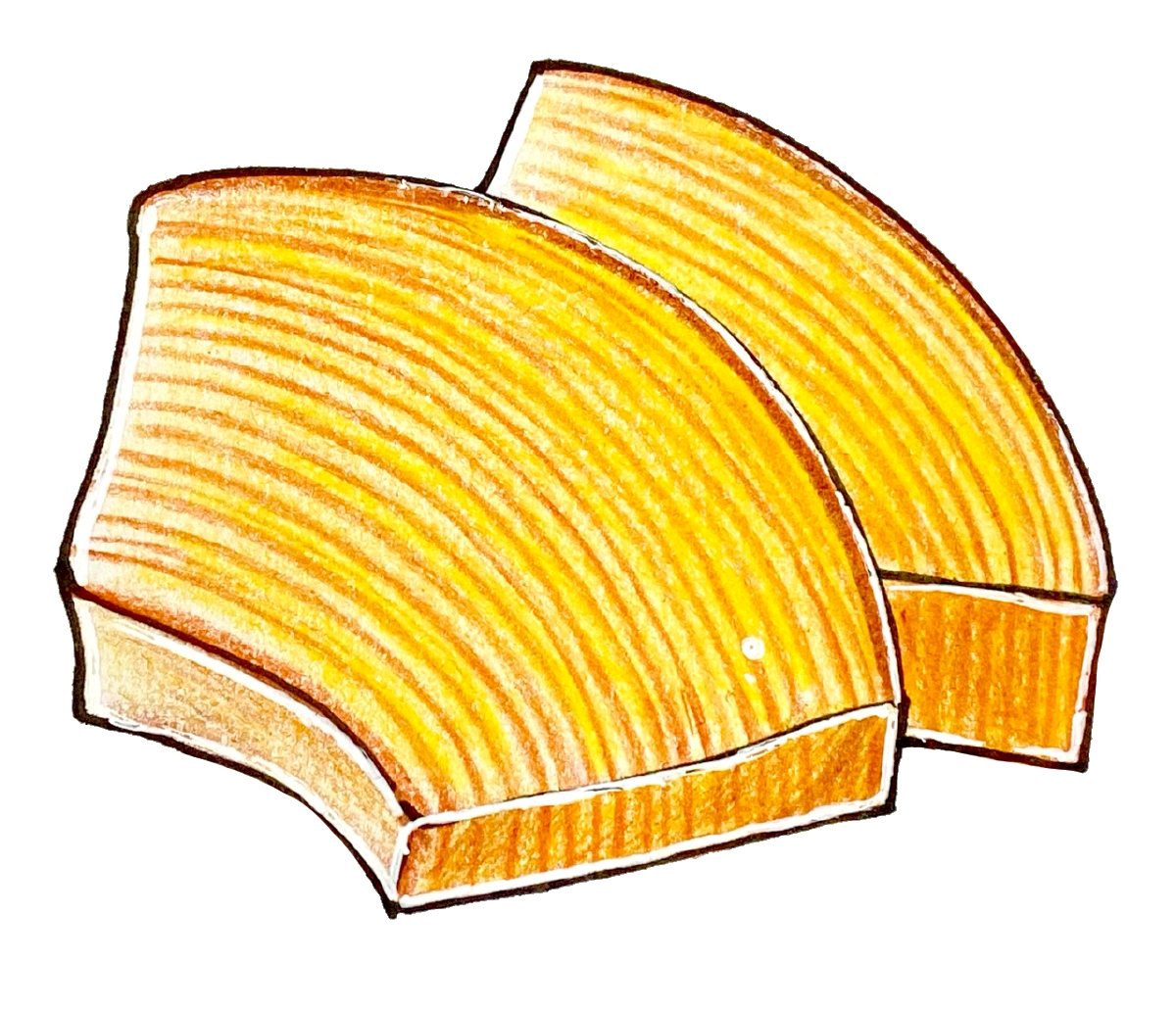 三方六を作る時に、長いバームクーヘンの両端を切り落としてキレイな三方六を切り出します。その時の切れ端がとてもダイナミックで希少な『三方六の端っこ』です!